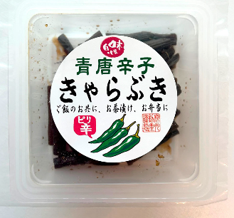 きゃらぶきの佃煮に青唐辛子のペーストを加えて、ピリ辛に仕上げました。