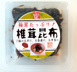 甘辛い昆布の佃煮に、大きめにスライスした椎茸の旨煮を混ぜ込みました。
