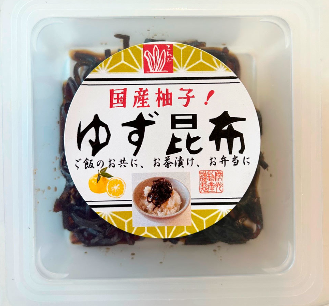 甘露煮にした国産の柚子皮がアクセントの、甘辛く炊き上げた昆布の佃煮です。