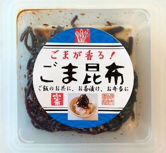 昆布の旨味と食感を活かして、甘辛く炊き上げた定番のごま入り佃煮です。